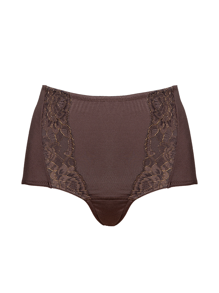 Die Maxi Giorgia aus der Pure Mocha Gold Collection lässt sich wunderbar mit dem Ella Top kombinieren, das aus 95% Bambus und raffinierter, weicher Spitze mit goldenen Details besteht. Das Modell hat einen schmalen Zwickel und einen hohen Ausschnitt an den Oberschenkeln, wodurch es als sehr bequem und angenehm empfunden wird.