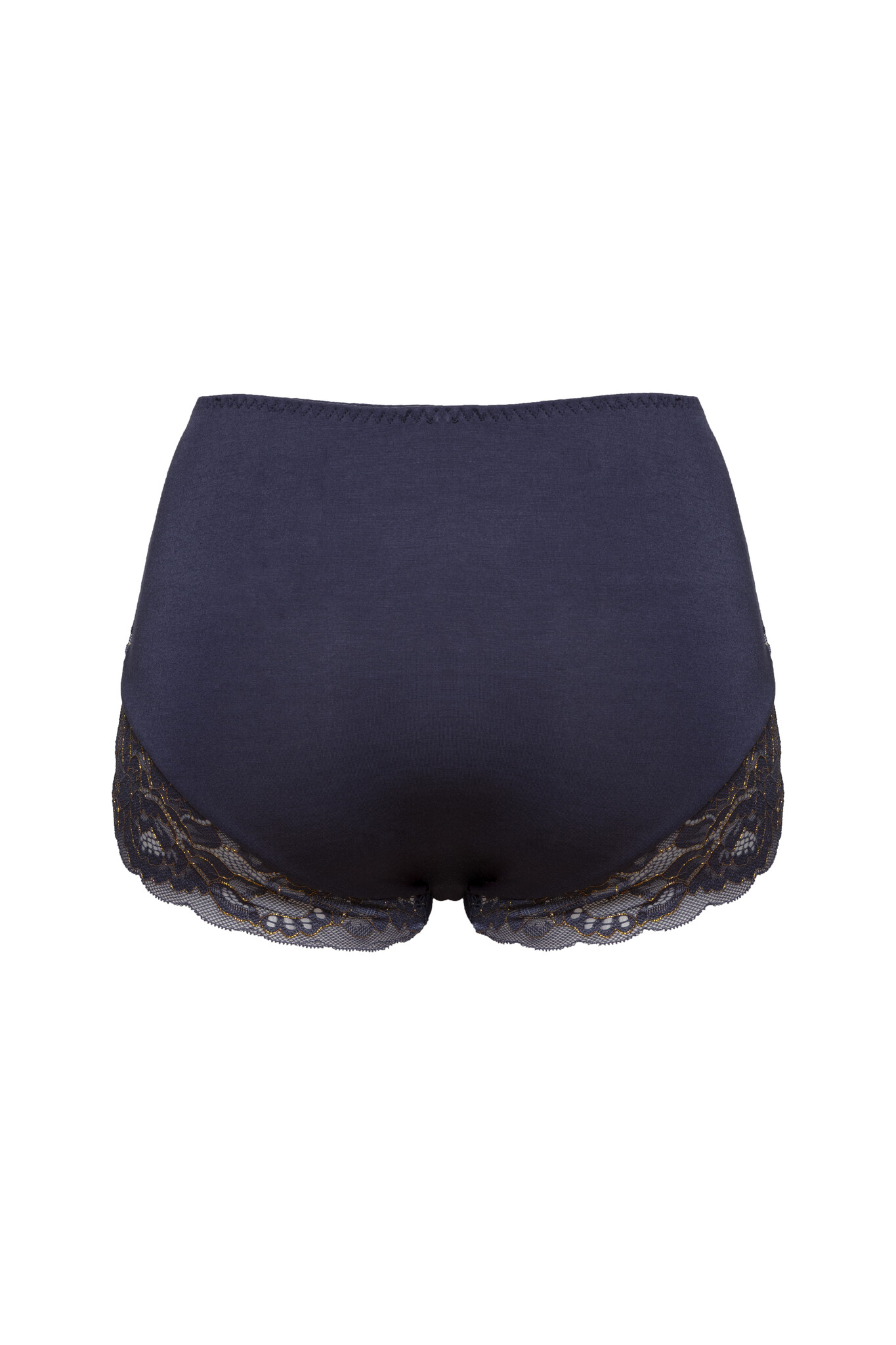 Der Midi Aurora aus der Magic Blue Gold Collection lässt sich wunderbar mit dem Ella Top kombinieren, das aus 95% Bambus und raffinierter, weicher Spitze gefertigt ist. Die dezente goldene Stickerei in der Spitze verleiht der Kollektion einen Hauch von Eleganz und Luxus.