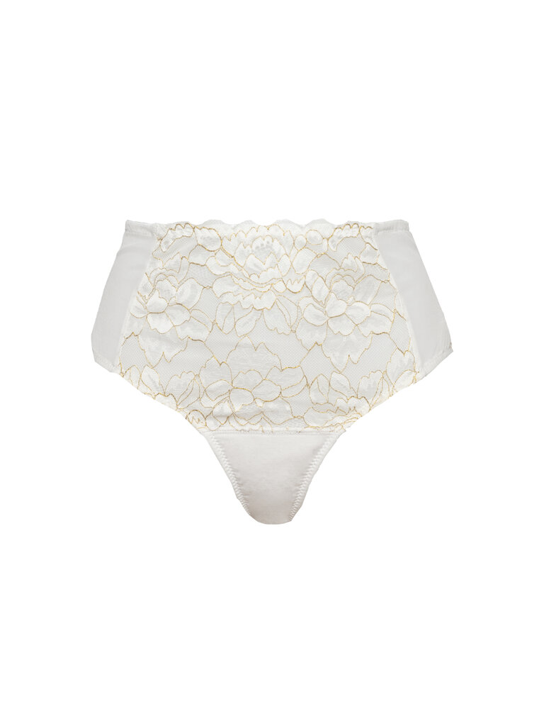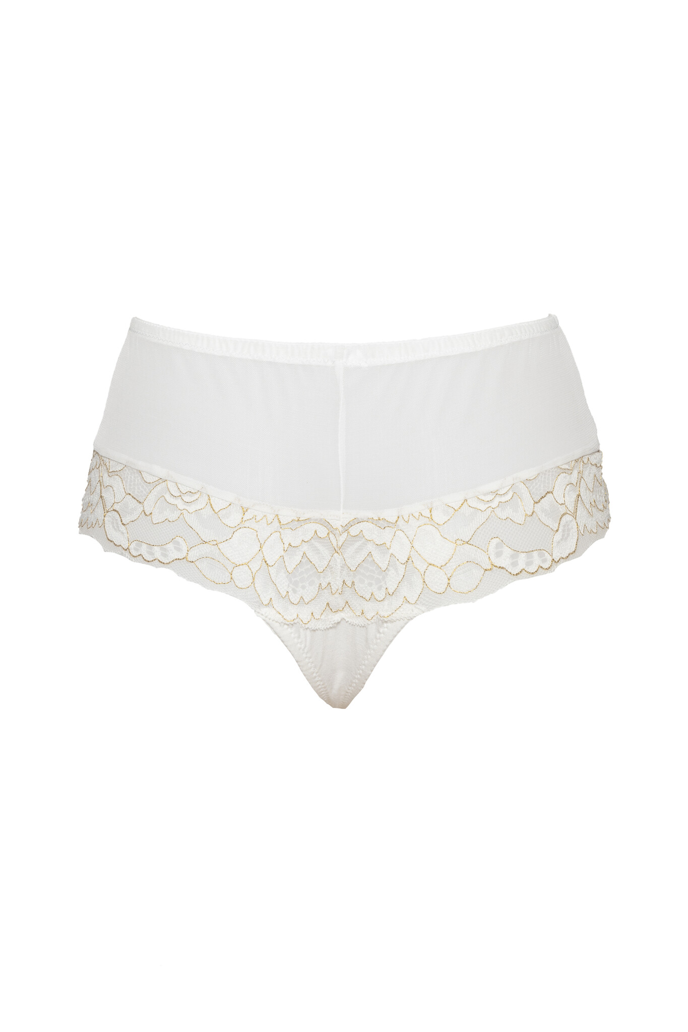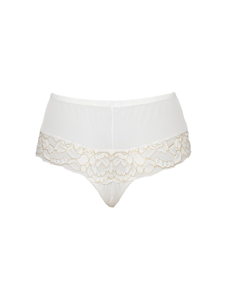 Der Bambus-String Verla hat eine elegante hohe Taille, fällt geschmeidig um den Körper und lässt sich wunderbar mit dem passenden Top Ella kombinieren, das aus seidig weichem Bambus gefertigt ist. Die Coconut Milk Kollektion zeichnet sich durch ihre raffinierten Spitzendetails mit dezenten Goldakzenten aus.