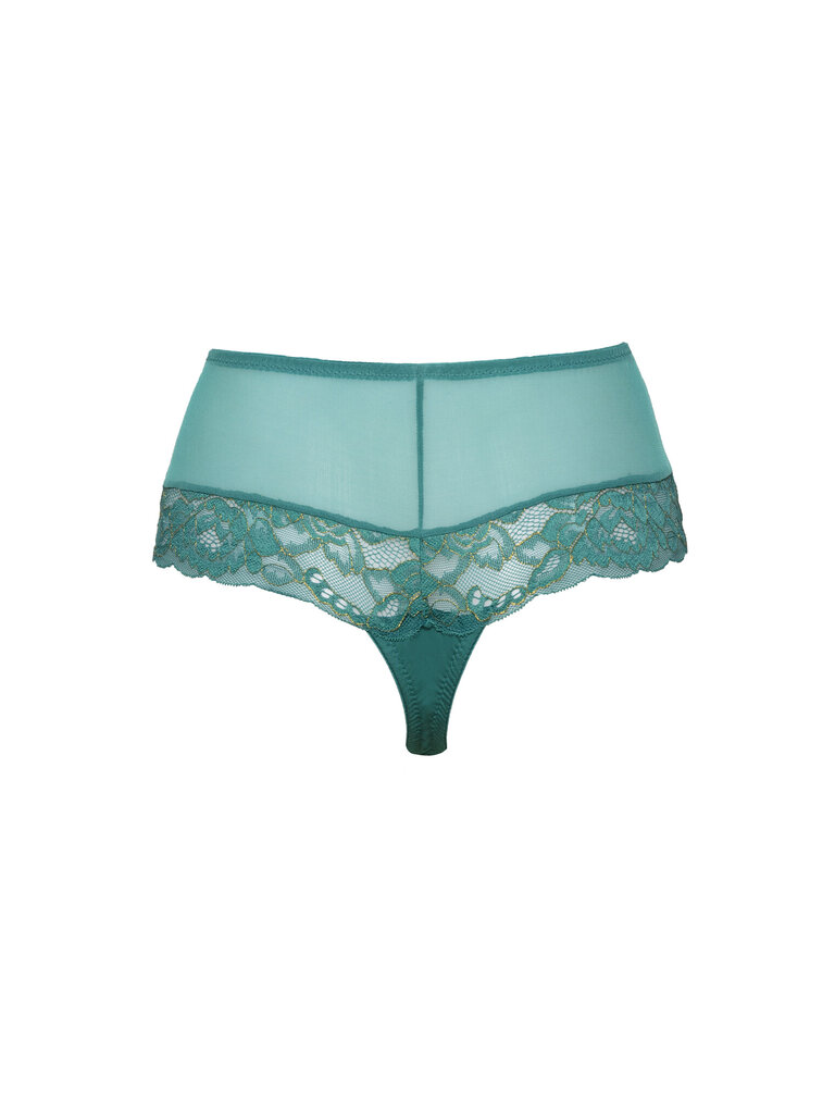 De bamboe string Verla heeft een elegante hoge taille, valt soepel om het lichaam en laat zich prachtig combineren met de bijpassende Top Ella, vervaardigd uit zijdezacht bamboe. De Ocean Green Gold Collectie onderscheidt zich door haar verfijnde kanten details met subtiele goudaccenten.